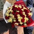 101 червона та біла троянда "Гран Прі "+"Аваланч"