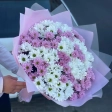 Букет з 25 білих та рожевих хризантем Ромашка