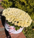 Композиція в коробці з 151 білої троянди "Аваланч"