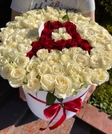 Композиція в коробці з 101 трояндою з викладкою літери "Д"